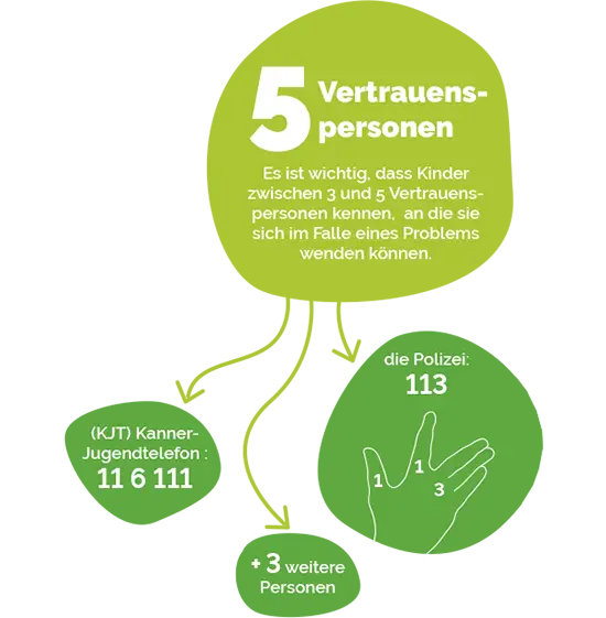 Die Hand soll wichtige Tipps für Kinder auf einfache Weise veranschaulichen, insbesondere im Hinblick auf den Schutz vor Gewalt, aber nicht nur das… (siehe Faltblatt).